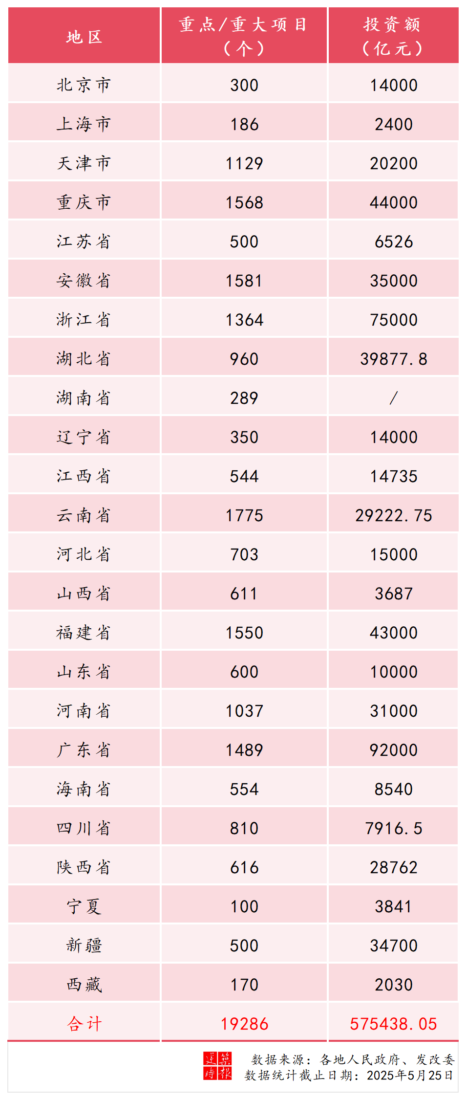 重大项目是经济发展的重要支点,也是高质量发展的关键抓手。经本报统计,截至目前,全国已有24个地区发布2025年重点工程项目相关投资计划,重点项目合计超1.9万个,总投资额合计达57.5万亿元。
